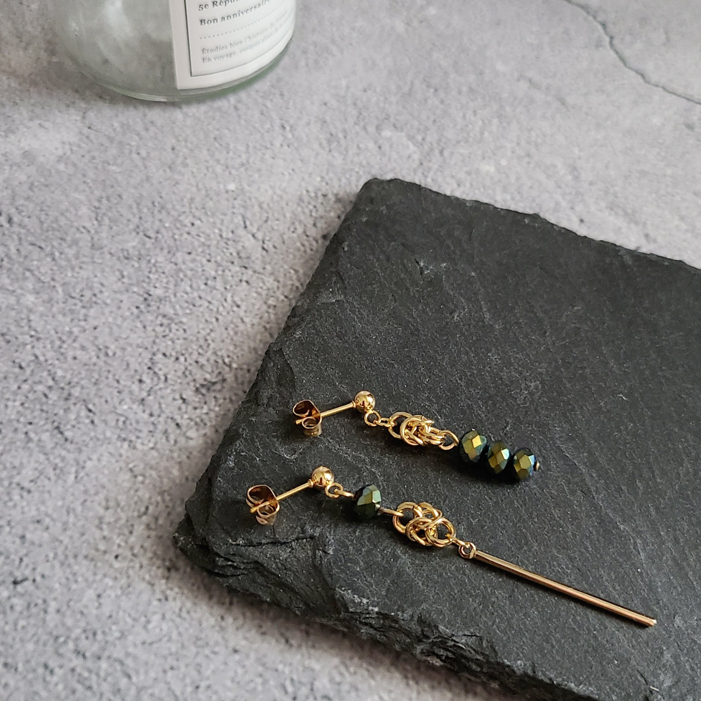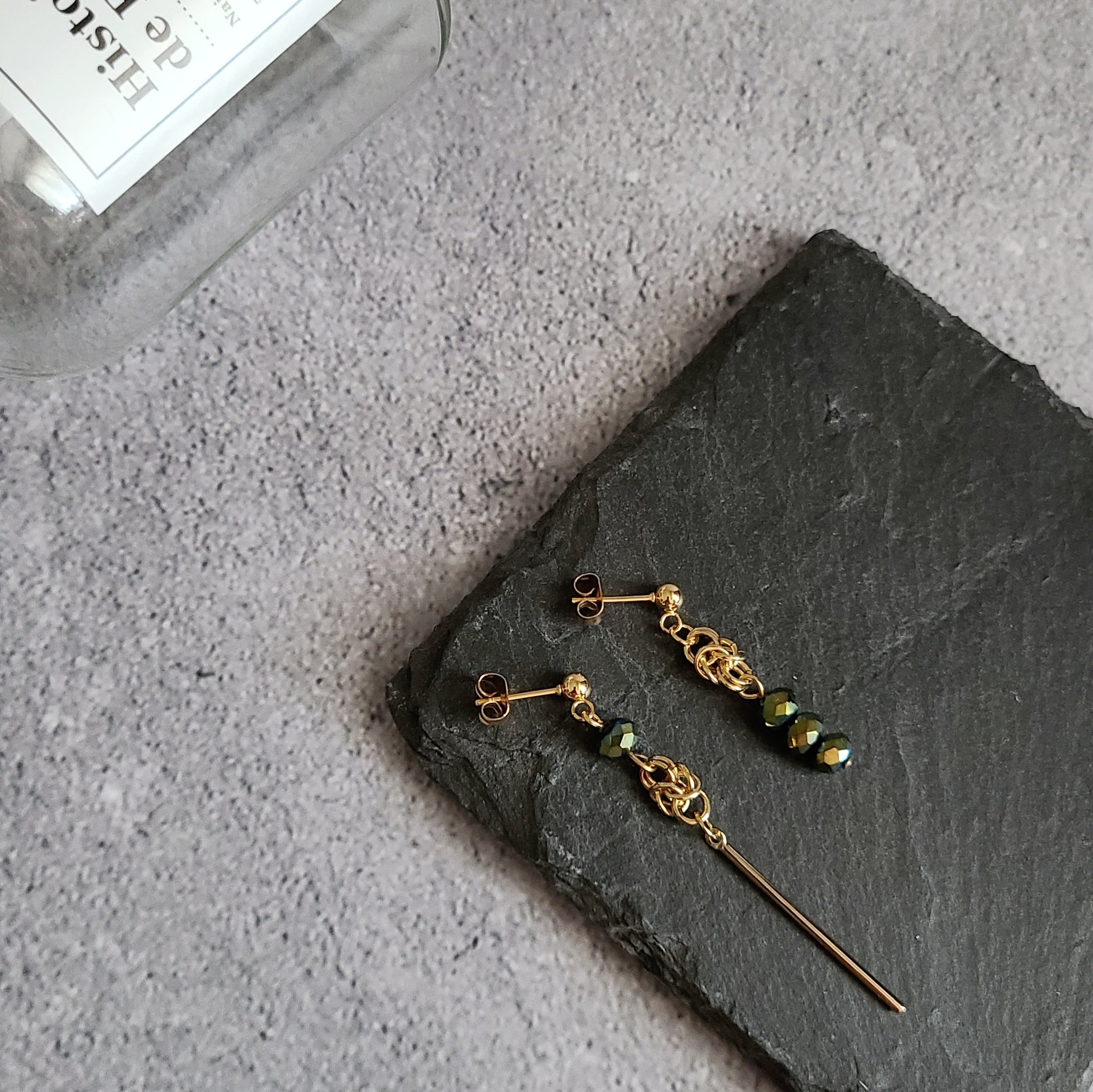 落ち着いた輝きのガラスビーズを合わせました。